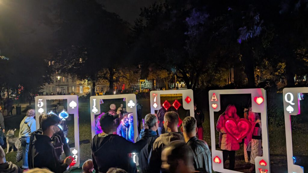 Ein absoluter Publikumsmagnet und wohl der begehrteste Selfiepoint war und bleibt unser Lichtkunstwerk „Leichtigkeit ist Trumpf!“